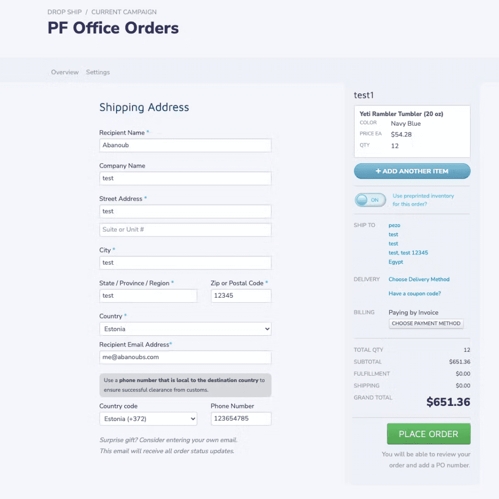 International shipments are often held up in customs if there’s not a local, in-country number associated with the order. Email is used as an additional method of contact if inquiries are necessary to process the shipment. With this form enhancement, when a Printfection user fills out delivery information, or as a recipient claiming a giveaway, users will now clearly see the phone and email fields are required when selecting any country outside of the US.
