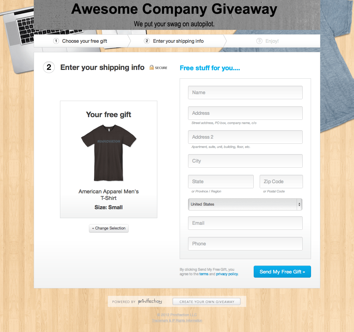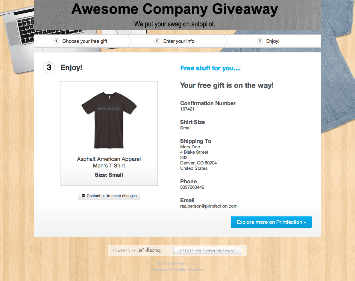 We’ve just improved our Giveaways interface, making it even easier for your customers to redeem your swag. Check out the intuitive step-by-step process we designed, which guides folks through redeeming their gift in just two simple steps. (Per usual you can still brand the Giveaway with your company’s logo and designs.)